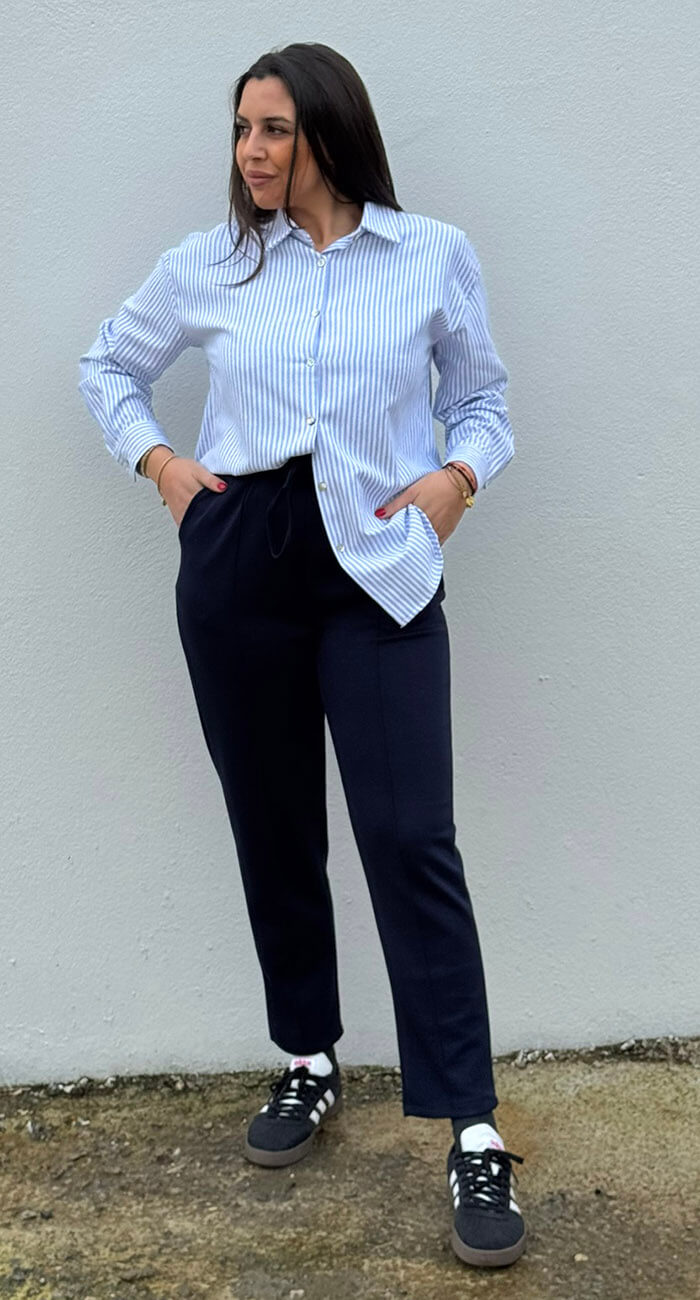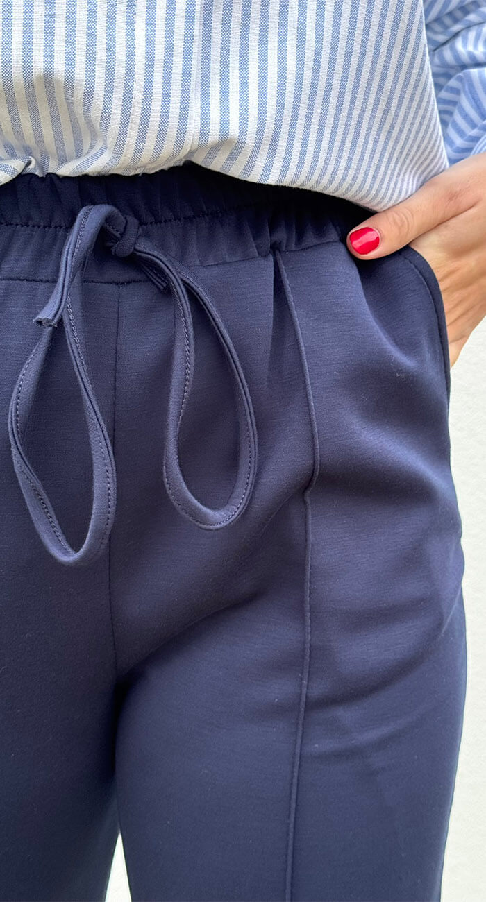Pantalón de corte recto combinado con bolsillo en lateral y cordón en su cintura permitiendo su ajuste.